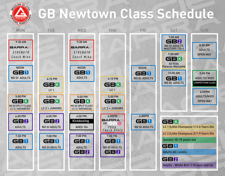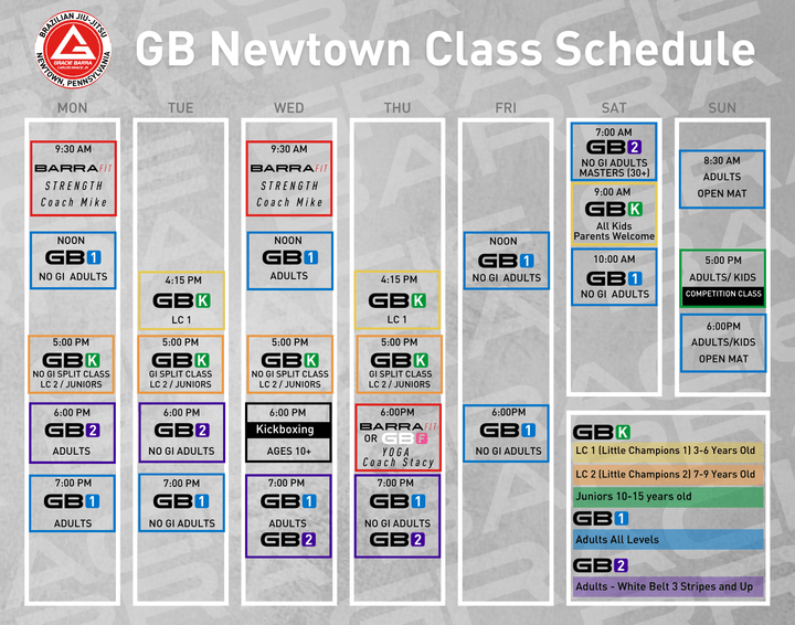 Gracie Barra Newtown winter 2025 Schedule